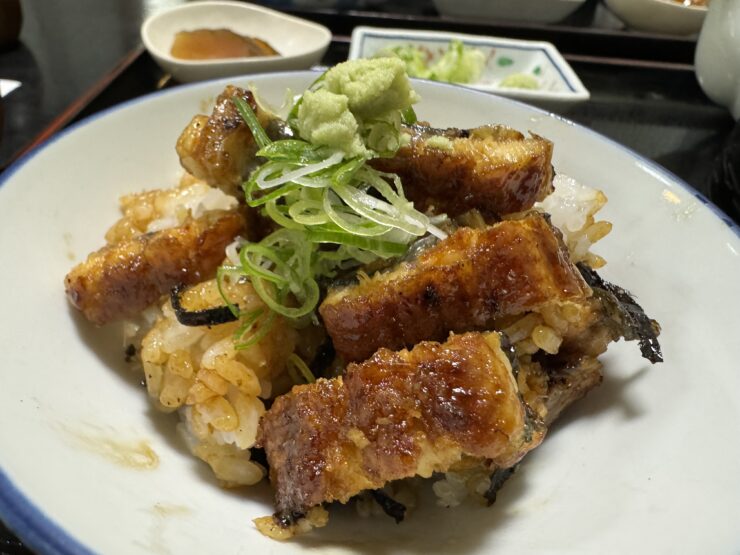 非常に香ばしく焼き上げられた鰻は、表面はパリッとしているが、鰻の身のしっかりとした食感も残っており、そのコントラストが非常に美味しい。