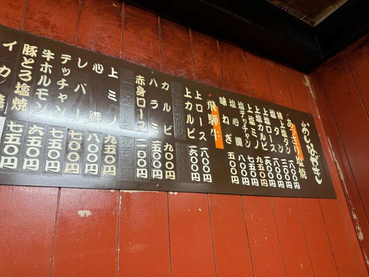 壁に貼られたメニューの中から、好みのものをオーダーしておきたい。もちろん飛騨牛の美味しい肉もオーダーしておきたい。