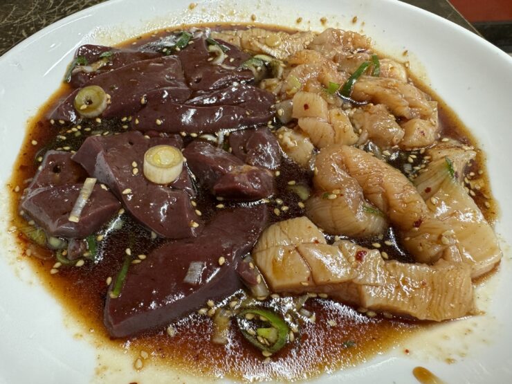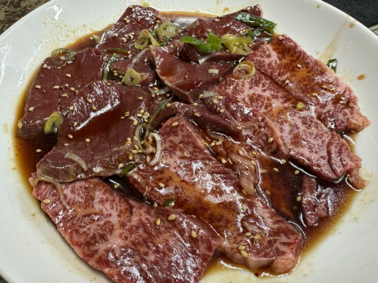そんなビールには美味しいセンマイ刺しがおすすめだ。特製のカラシ酢味噌とセンマイの食感は非常に素晴らしく、まったく臭みを感じない丁寧な手仕事に、焼肉への期待がますます高まる。