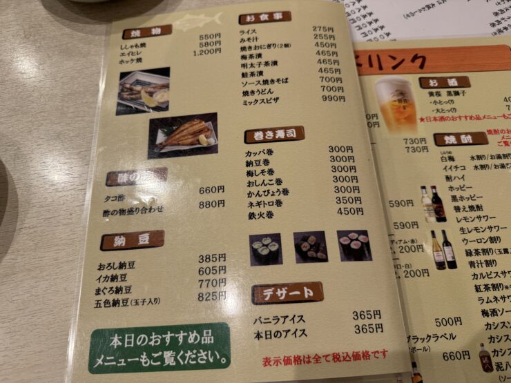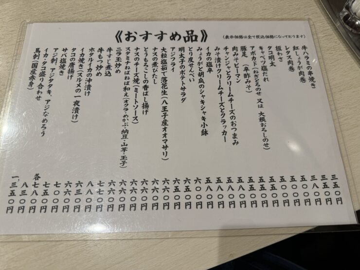 こちらのお店、海鮮から美味しいもつ焼きまで、なんでも美味しいメニューが揃っている。