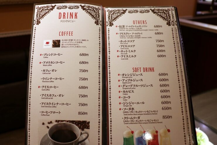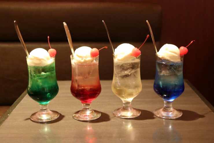 そのほか、カラフルなクリームソーダや、コーヒーゼリー、ソフトクリーム、プリンアラモードなど、喫茶店ならではの懐かしくも愛され続ける定番スイーツもそろっています。