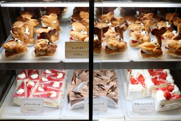 11:00~17:00には、自社工房「ぴよりんアトリエ」で丁寧に仕上げた自家製ケーキ(レアチーズケーキ、チョコレートケーキ、季節のショートケーキなど)や、「シャチボン」をいただけます。
