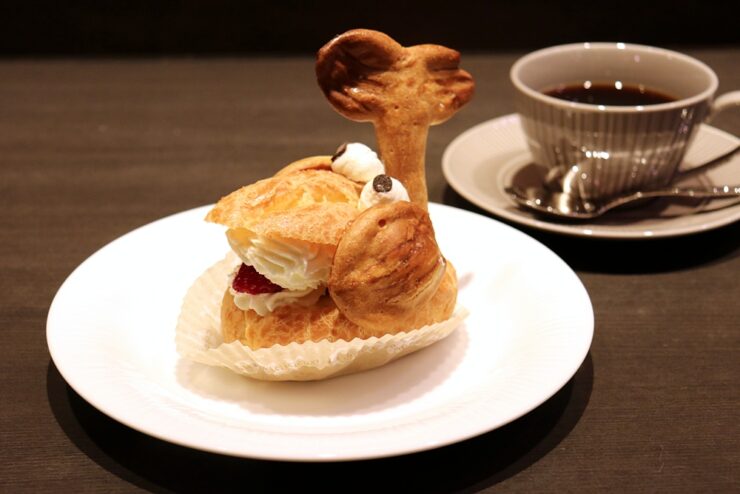 今回の復活にあたり、自社工房「ぴよりんアトリエ」にて素材選びから製法まで徹底的に見直し、従来の味わいを大切にしながらも、品質と美味しさを格段に向上させたとのこと。しっかりとした食感のシューの中に、たっぷりのカスタードクリームと生クリームが詰まっています。尾の部分のかりっとした歯触りも楽しいです。