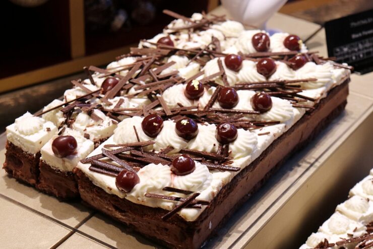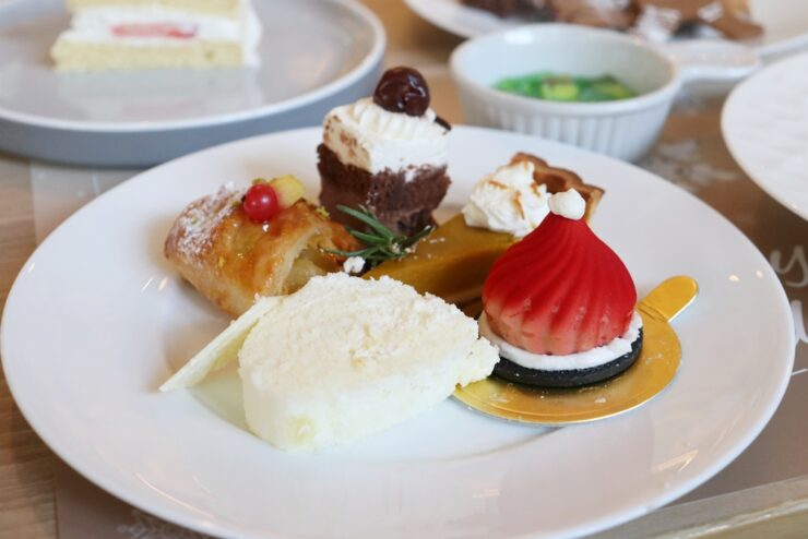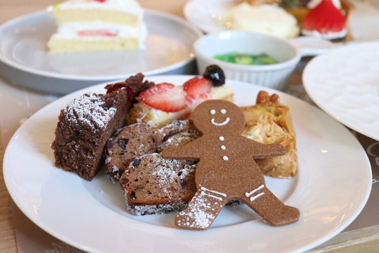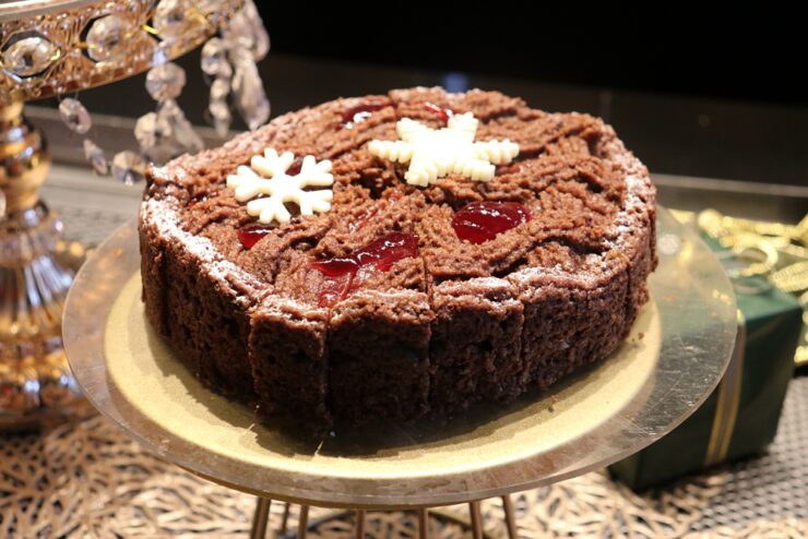 「クリスマス・ブラックフォレスト」は、黒い森をイメージしたドイツの伝統菓子です。グリオットチェリーの爽やかな酸味とキルシュの芳醇な香りがチョコレートと絶妙にマッチした大人の味わいで、個人的には今回のスイーツブッフェで一番おいしいと感じました。コーヒーとの相性も抜群です。