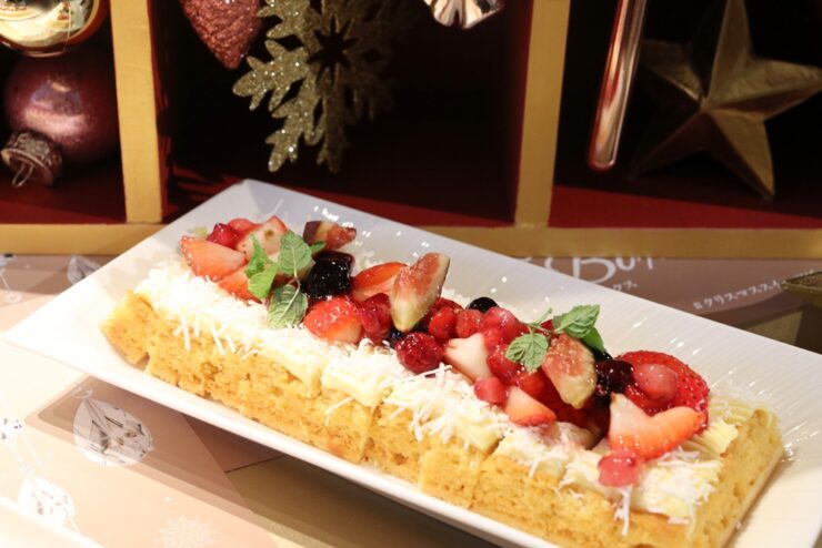 今回のクリスマススイーツビュッフェは、まるで宝石箱を開ける瞬間のような高揚感をテーマに、季節のフルーツや欧州の伝統菓子を取り入れた華やかなスイーツや、クリスマスツリーやリースをモチーフにしたスイーツが並びます。