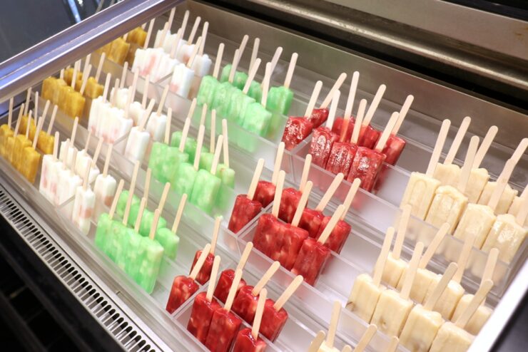 「アイスキャンディー」は、クリスマス赤ワイン、苺カルピス、オレンジスパイス、マスカットの4種類。赤と緑が隣り合っているのもクリスマスらしく、ホテルメイドならではのリッチな味わいを楽しめます。