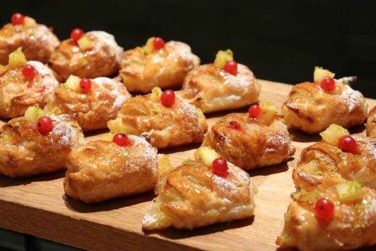 「パイナップルデニッシュ」は、甘酸っぱくジューシーなパイナップルと、なめらかなカスタードを包み込んだデニッシュ。ちょこんとトッピングされたレッドカラントの彩りがクリスマスの華やかさを引き立てています。サクサクと小気味よい歯ざわりで、小ぶりなので食べやすいです。