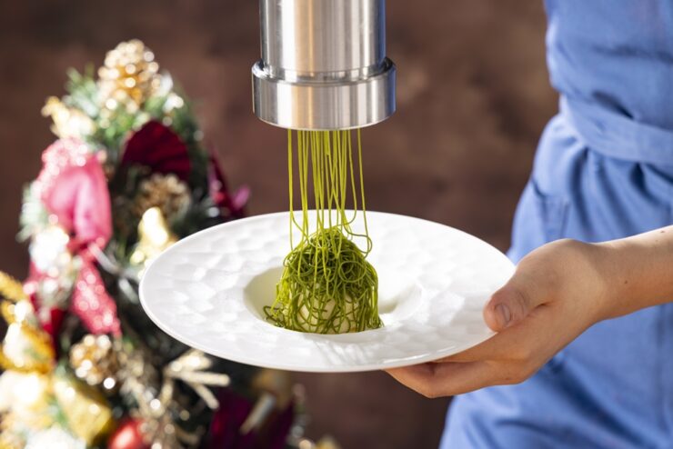 さらに、ライブステーションでは、目の前で仕上げる「和栗の生絞り抹茶モンブラン」「炙りバスクチーズケーキ ミックスベリークーリー添え」「ストロベリーショートケーキ」がホリデーシーズンのひとときを華やかに演出! 実際に体験してきたので、写真とともに紹介します。