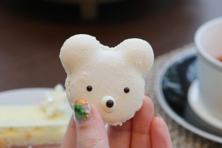 クマカロンは、食べるのがもったいなくなってしまうほどキュートな大きめのマカロン。サクッ、ねちっとしたマカロンらしさを存分に味わえます。