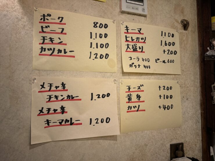 こちらのお店では、ポーク、ビーフ、チキンにキーマと4種類の基本のカレーが存在しており、そのどれもが美味しい。