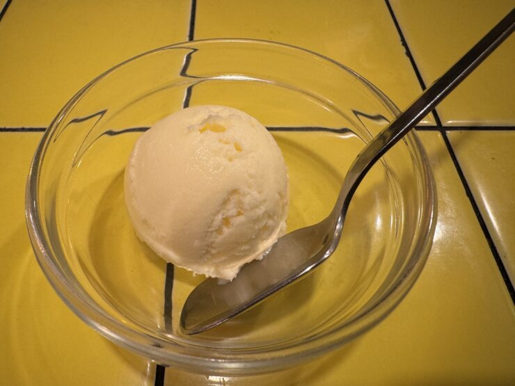 心ゆくまでカレーを味わったのなら、最後には優しいバニラアイスが提供される。