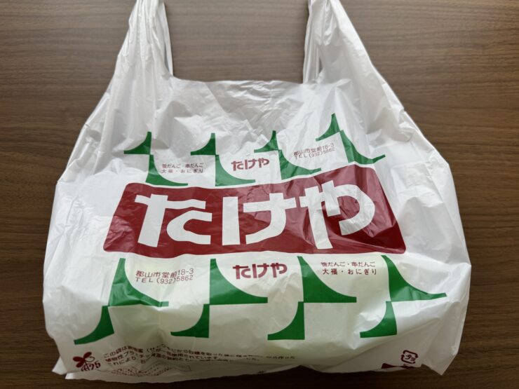 少し懐かしさを感じるデザインの袋の中には、包まれたおにぎりが入っている。