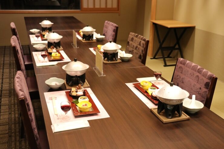 今回は、料理長おすすめの『十八楼特選会席』をいただきました。季節を盛り込んだ演出で、飛騨牛鍋や旬の新鮮なお魚、職人技の前菜などを味わえます。食前酒のノンアルコールサングリアで乾杯したら、極上のひとときの始まりです。