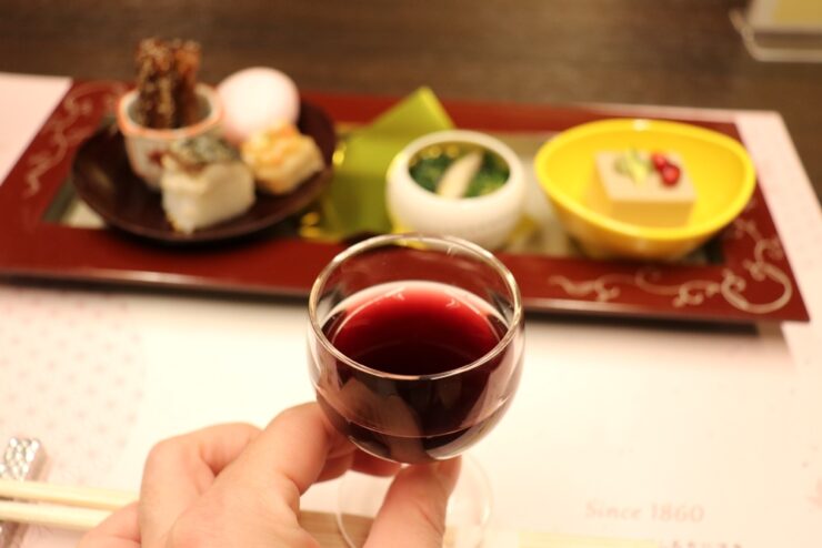 飲み物は、三千盛(みちさかり)、光琳、氷室といった日本酒や、梅酒、焼酎、ビール、ワインなど種類豊富なラインアップ。今回は十八楼オリジナルラベルの古酒をいただきました。