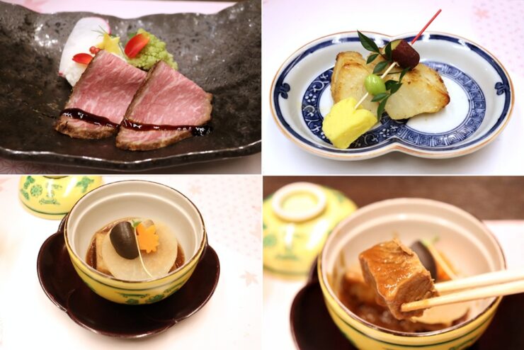 しっとりとした飛騨牛ローストビーフ、脂がのったカラス鰈西京焼き、ホロホロになるまで柔らかく煮た飛騨牛旨豚八丁味噌煮。一品一品しみじみと味わいたくなるおいしさです。