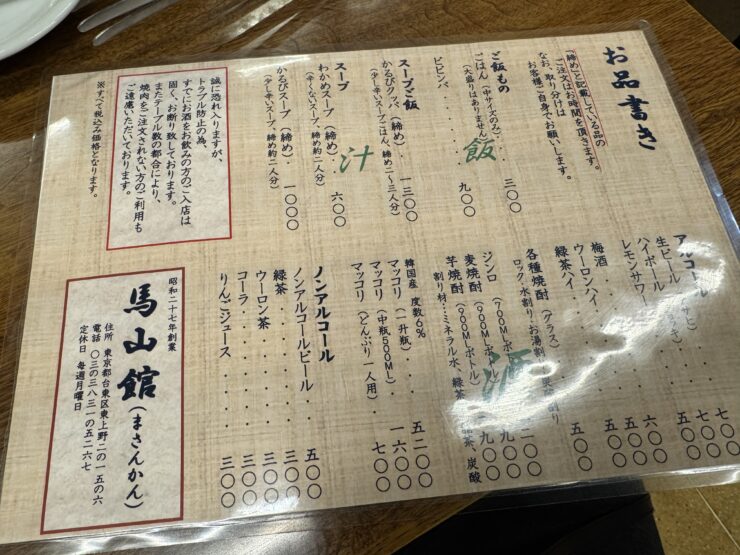 昭和27年創業の老舗焼肉店で味わう絶品の焼肉とは? / 東京都台東区東上野の馬山館 (マサンカン)