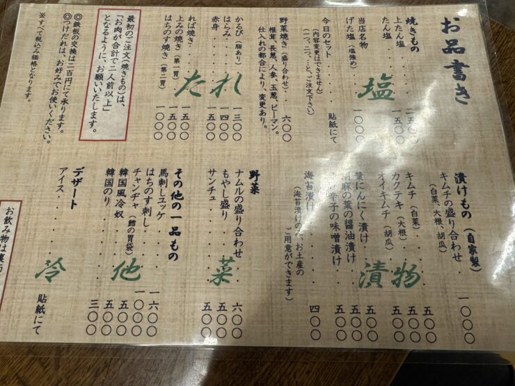 シンプルなメニューから味わいたいメニューをシンプルに注文すれば、素晴らしい焼肉タイムのスタートだ。